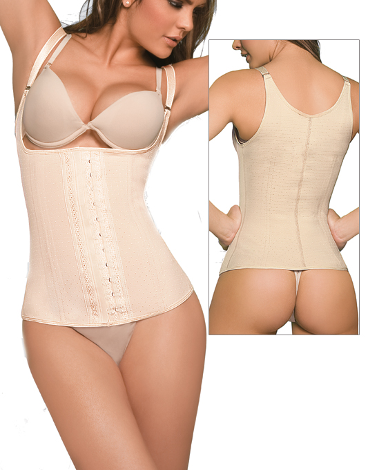 Descripción: Semi-Chaleco de latex recubierta en 100% algodon Lycra. Reduc 10 cm de cintura. Corrigue la postura. Pierda peso y medidas por sudaracion. Resalta el busto, Controla Cintura, Espalda y abdomen. Doble posicion de ganchos para mayor funsion. Extra control. NO Lavar en Lavadora, NO usar secadora. Color Piel. Muchas mujeres lo usan diaramente para tonificar y reducir cm's de su cintura. Faja Chaleco Post Parto. Tirantes de Brasier ajustable