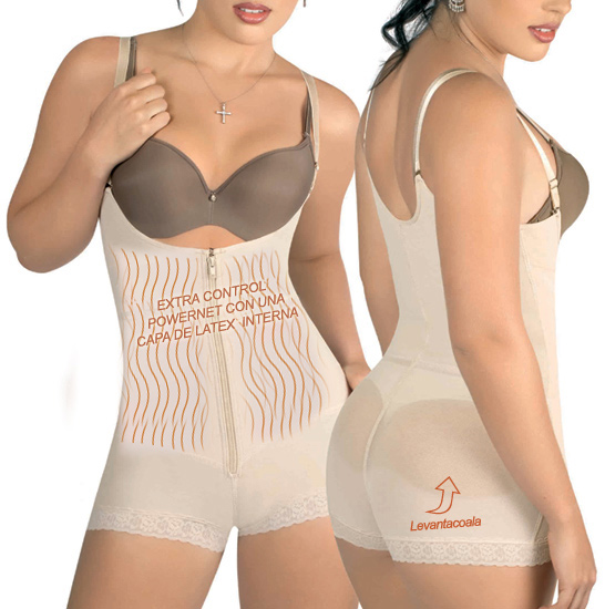 Description: Body control Powernet w/ Latex Contour Inside. Shaping Girdle. Abdomen Control, Back Support, Lower Tummy Support. Adjustable Straps, Lifts Bust. Recommended: Daily Use, Post-Partum, Shaping Girdle. Mini-Short Derriere Enhancer Laced Design. Frontal Zipper, Inside Eyelet Hooks Closure. Reduces and maintains the firmness on your abdomen. Corrects and helps your posture. Enhances the gluteus, busts, and shapes your silhouette body. Many women wear this garment on a daily basis to tone and instantly reduce cm's on their waste, hips and legs while in use. Open Crotch convenient for bathroom use.