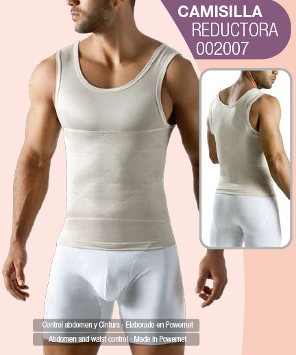 Descripción: Camiseta Reductora de abdomen y Cintura. Corrector de postura. Apariencia invisible. Elaborada en Powernet. Reduce y controla las areas flacidas en la espalda